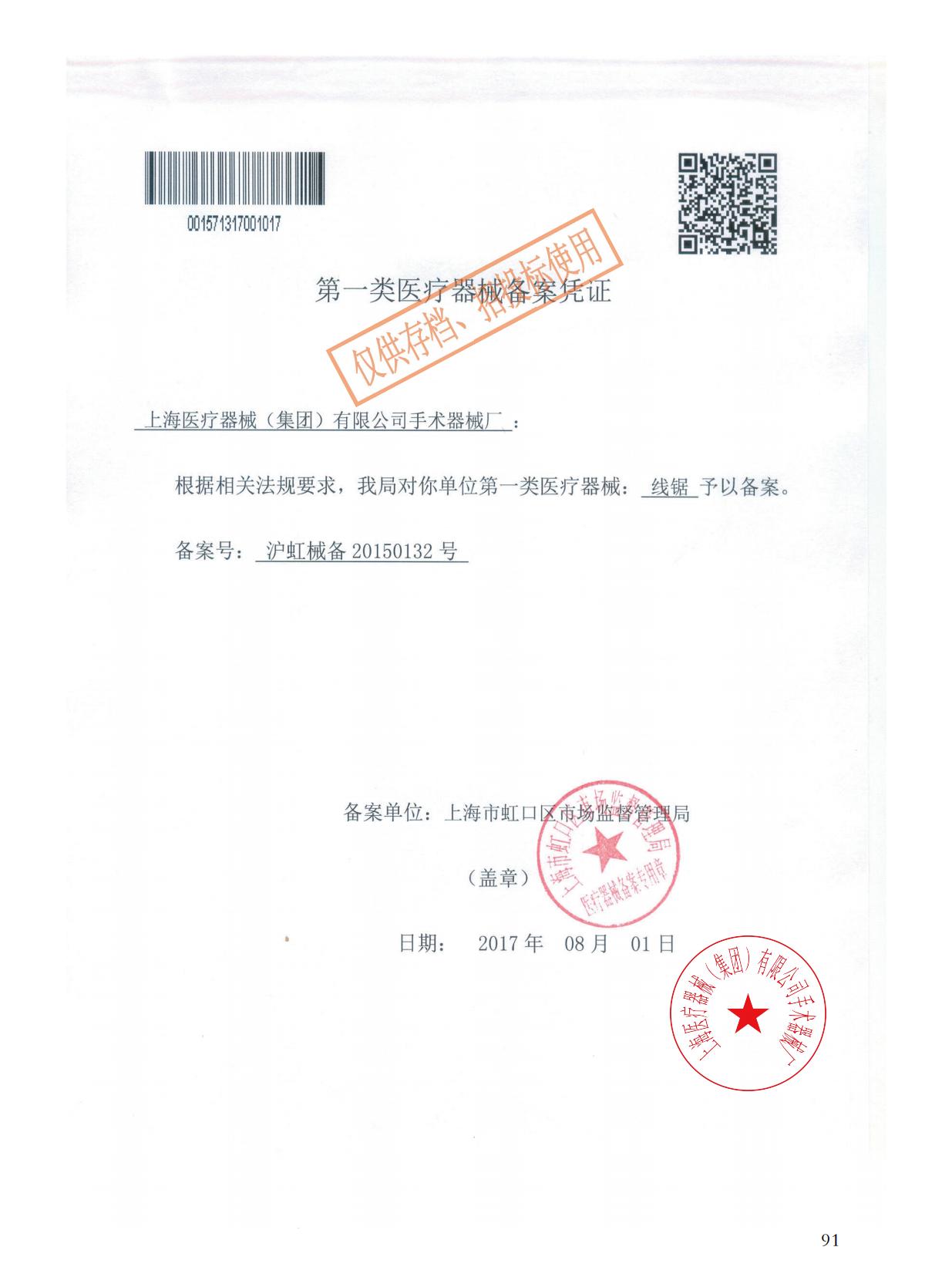 - 產(chǎn)品注冊(cè)證號(hào):滬虹械備 20150132 號(hào)