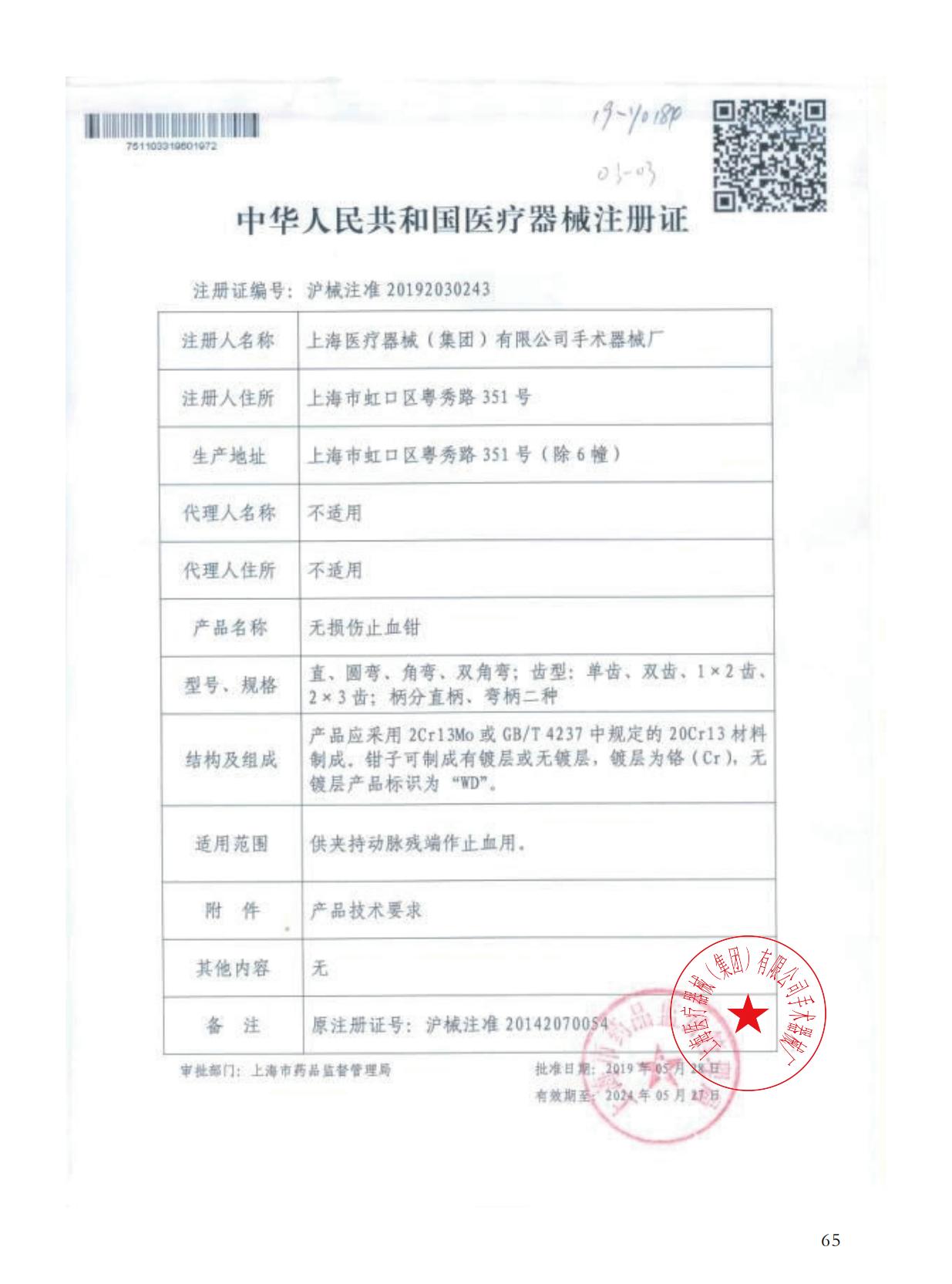 - 產(chǎn)品注冊(cè)證號(hào):滬械注準(zhǔn) 20192030243