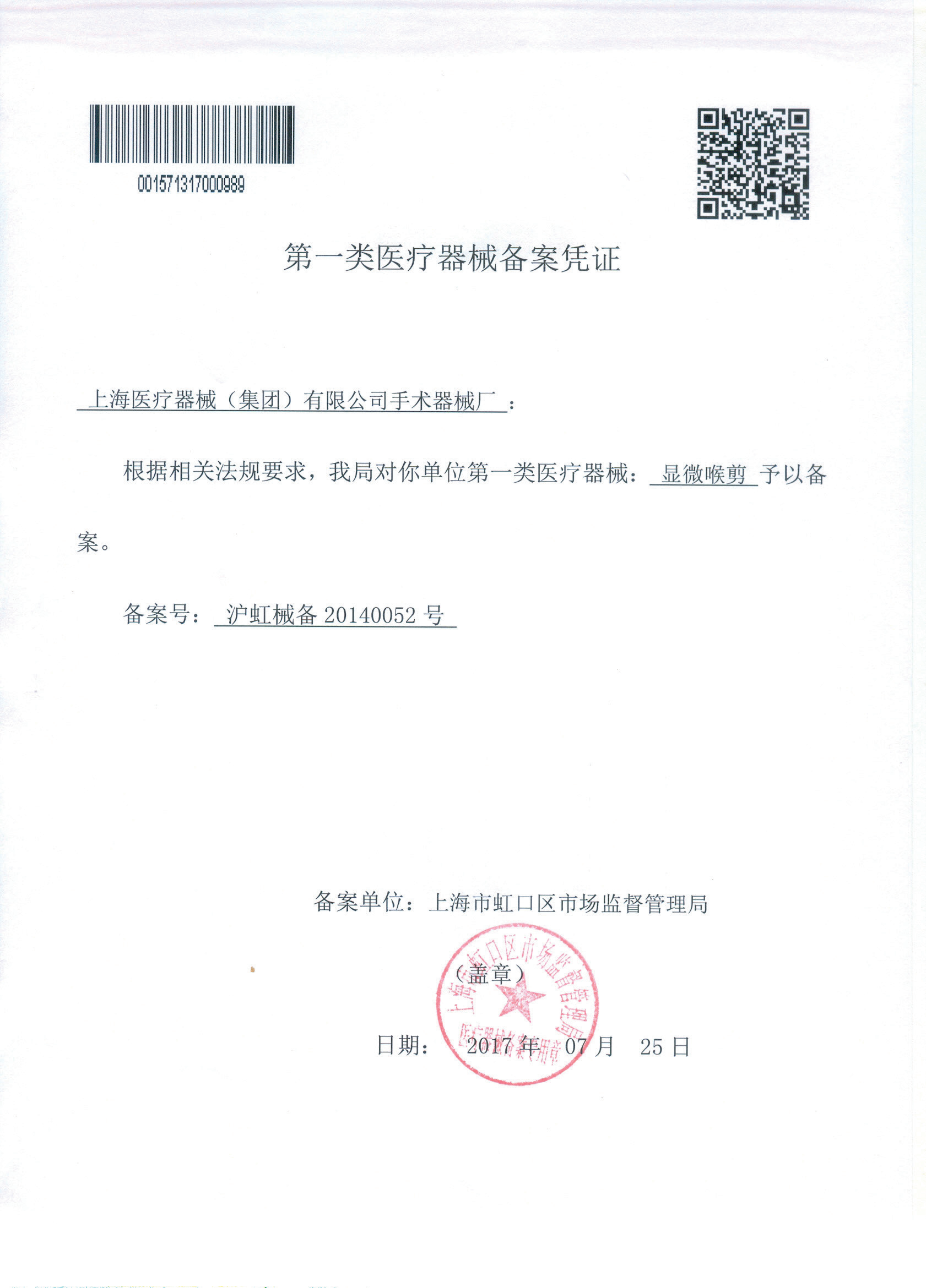 - 產(chǎn)品注冊證號:滬虹械備 20140052 號