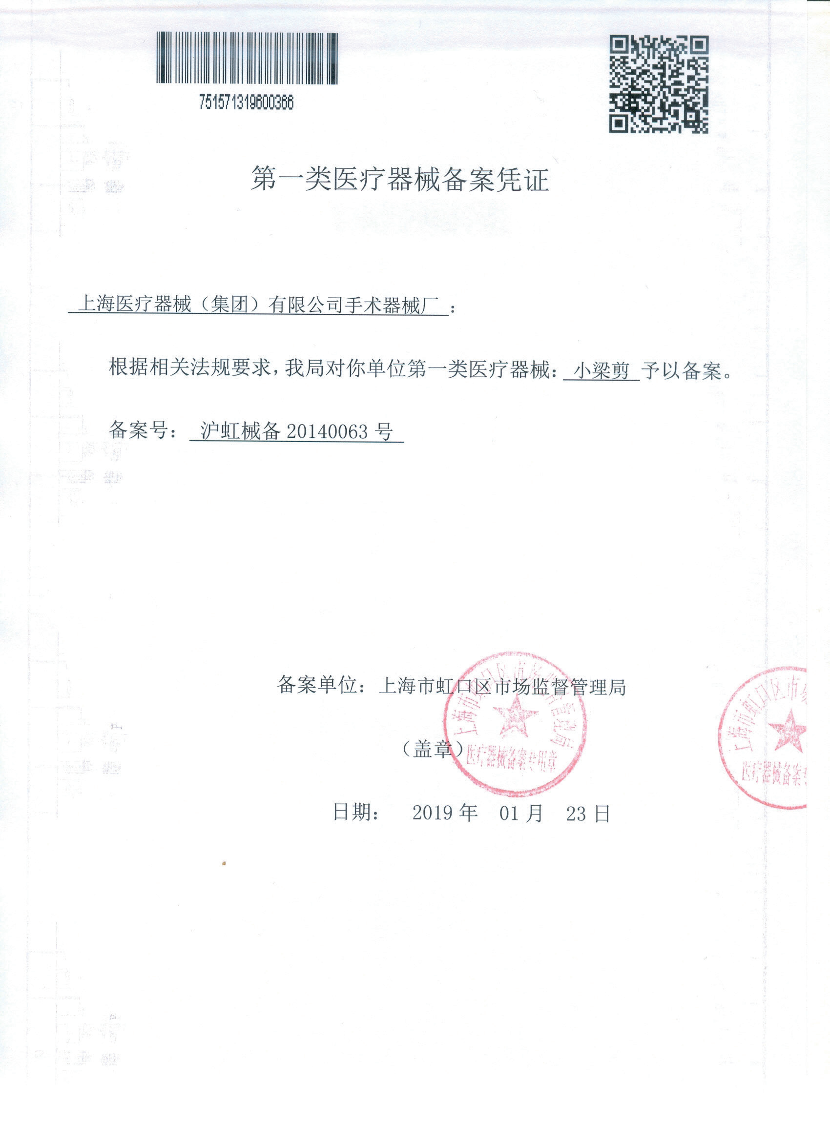 - 產(chǎn)品注冊證號:滬虹械備 20140063號