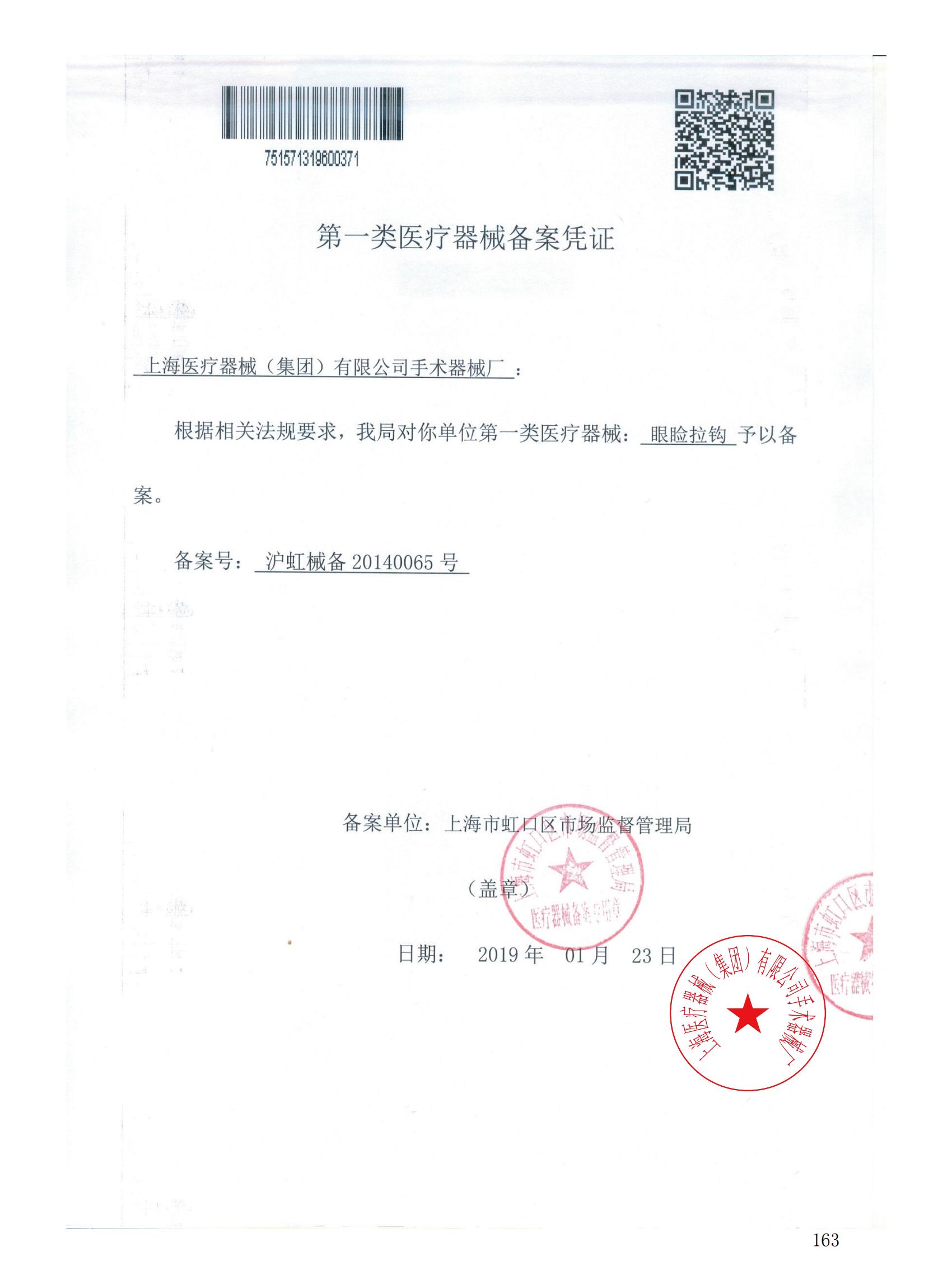 - 產(chǎn)品注冊證號(hào):滬虹械備 20140065號(hào)