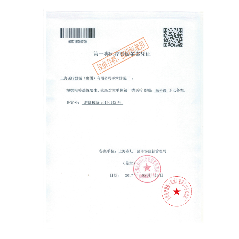 - 產(chǎn)品注冊證號: 滬虹械備 20150142 號