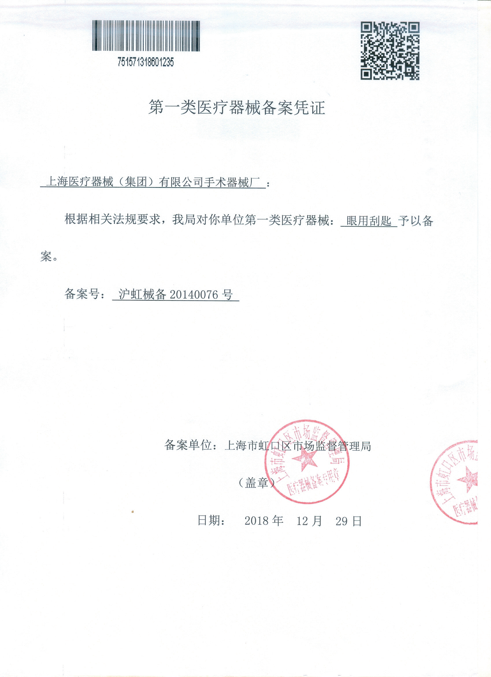 - 產(chǎn)品注冊(cè)證號(hào): 滬虹械備 20140076號(hào)