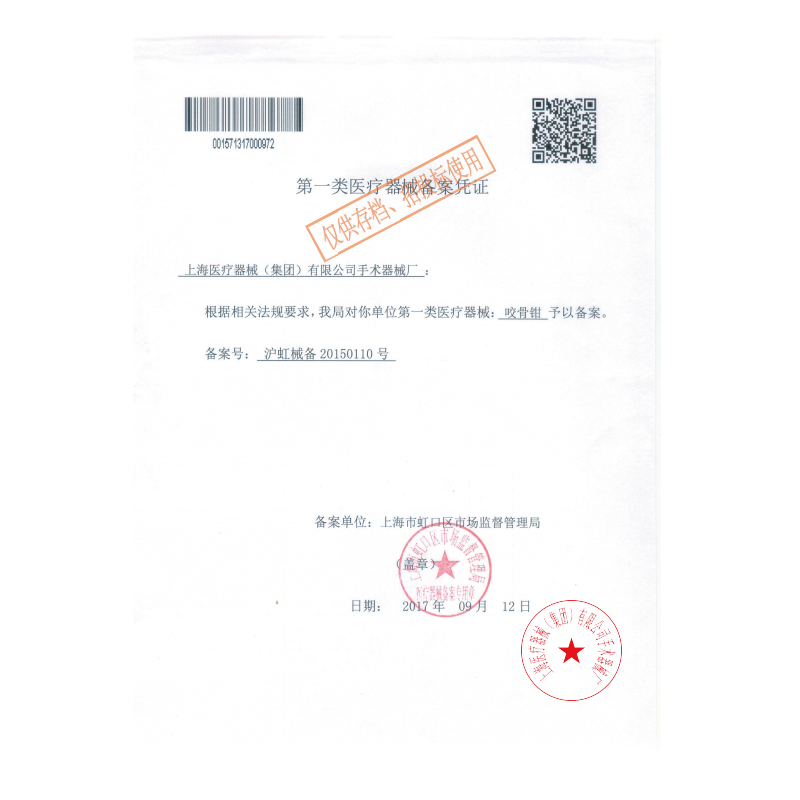- 產(chǎn)品注冊(cè)證號(hào):滬虹械備 20150110 號(hào)