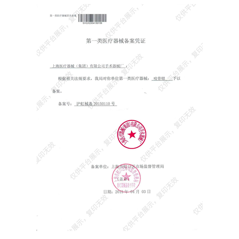 - 產(chǎn)品注冊證號:滬虹械備20150110號
