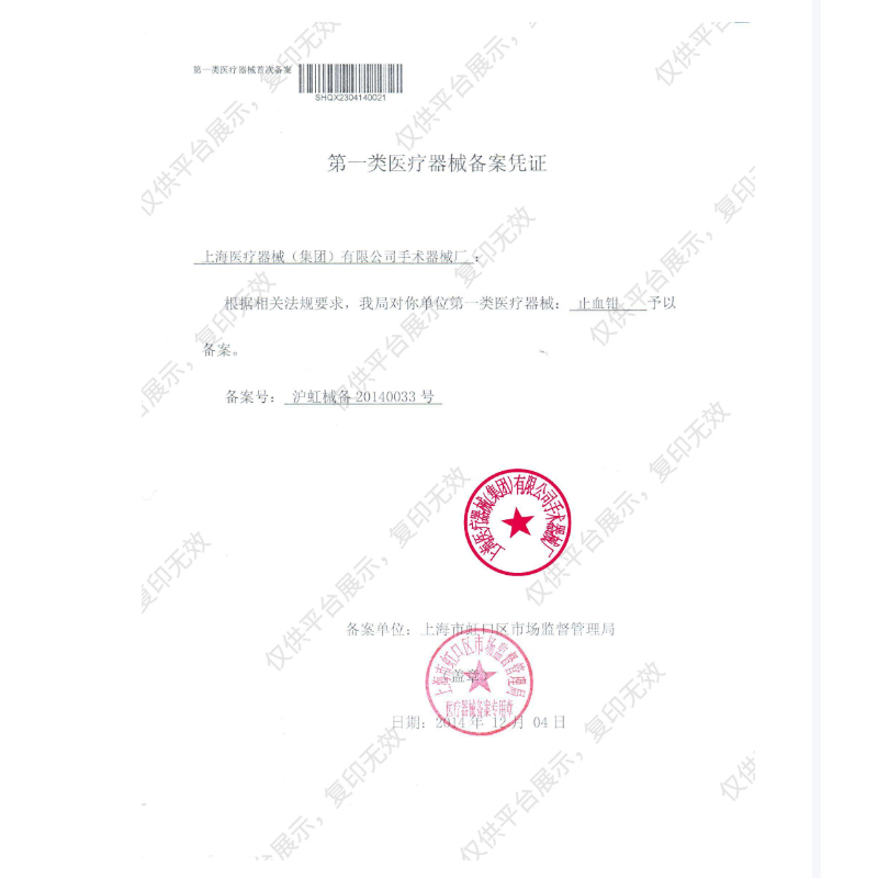 - 產(chǎn)品注冊證號:滬虹械備20140033號