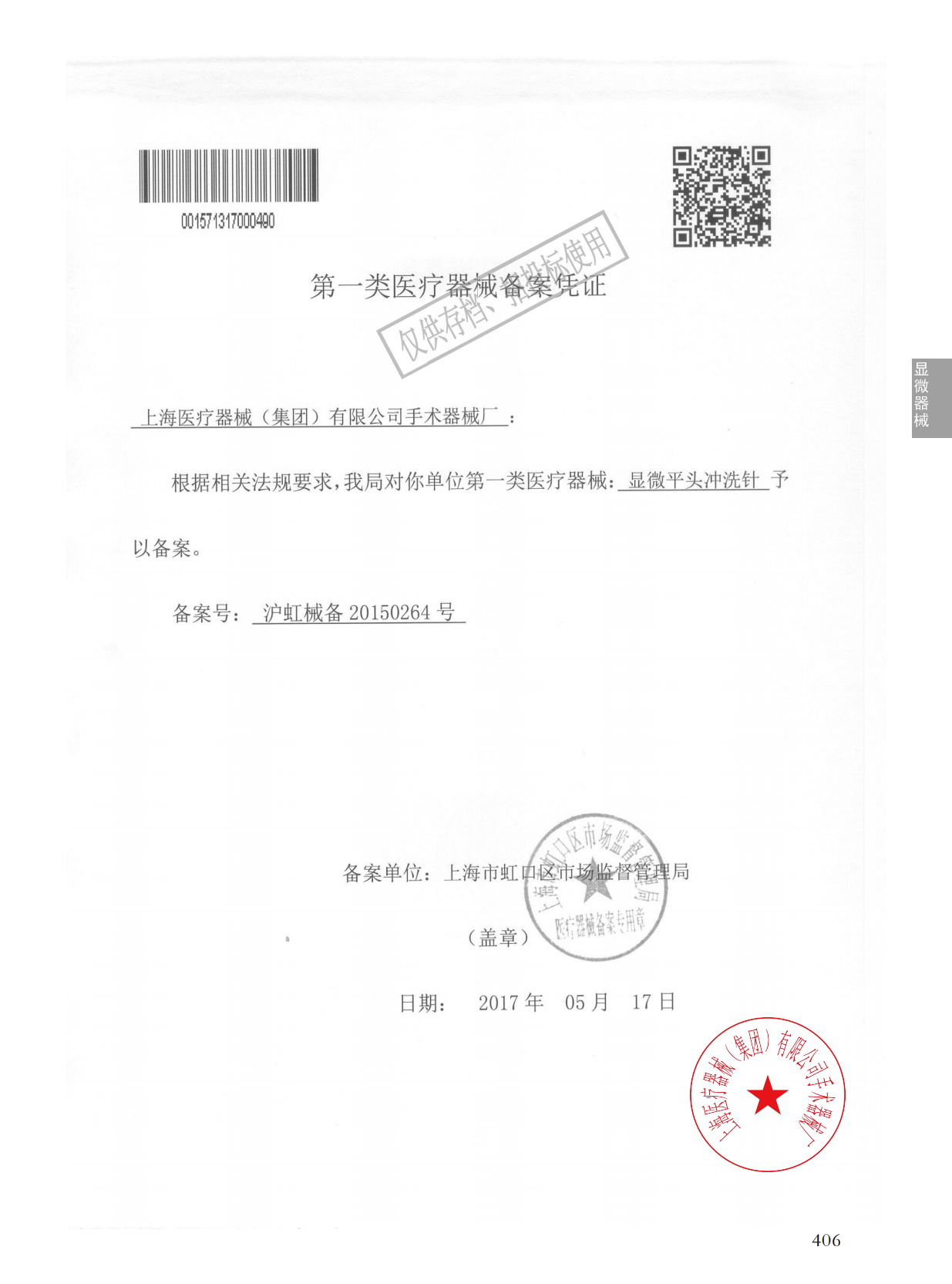 - 產(chǎn)品注冊證號:滬虹械備20150264