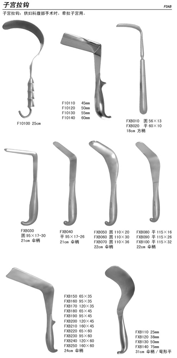 | F10100 | 子宮拉鉤 25cm圓鉤柄 平40×120 | 把 | C |