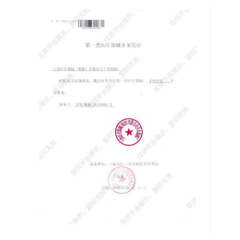 - 產(chǎn)品注冊(cè)證號(hào):滬虹械備20150005號(hào)