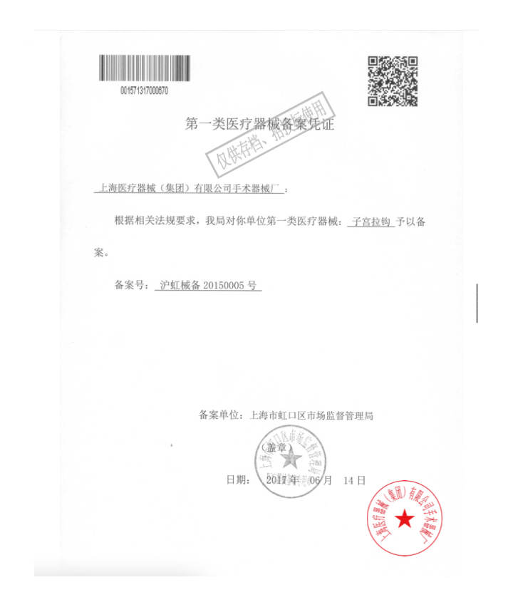 - 產(chǎn)品注冊證號:滬虹械備20150005號
