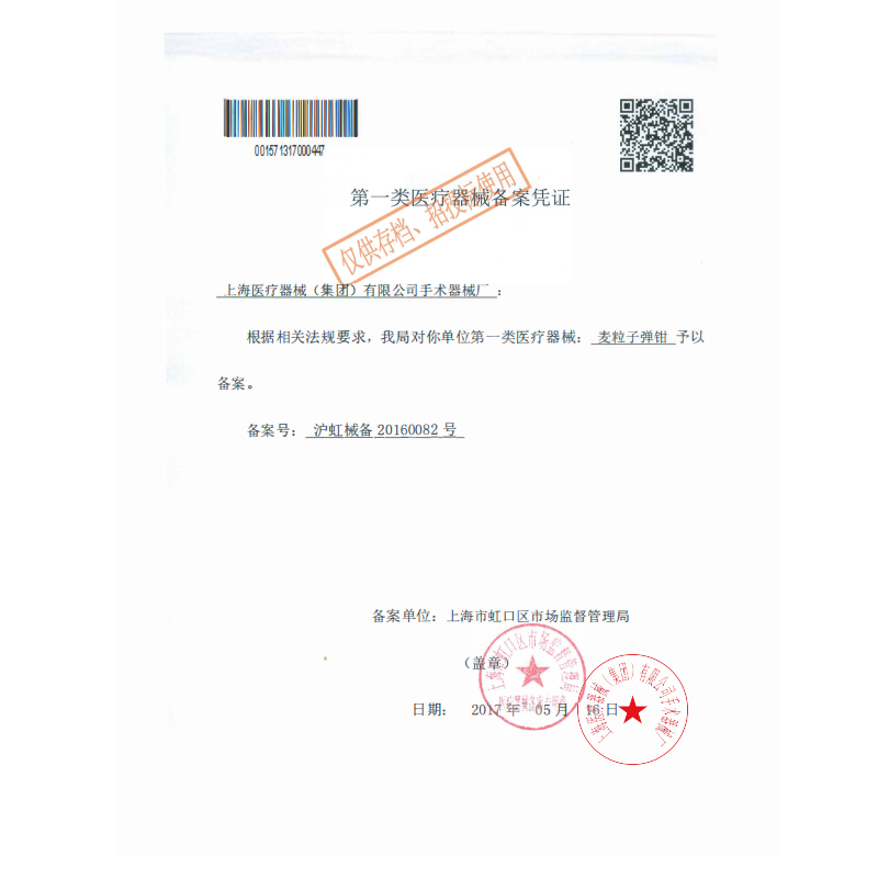 - 產(chǎn)品注冊(cè)證號(hào):滬虹械備 20160082 號(hào)