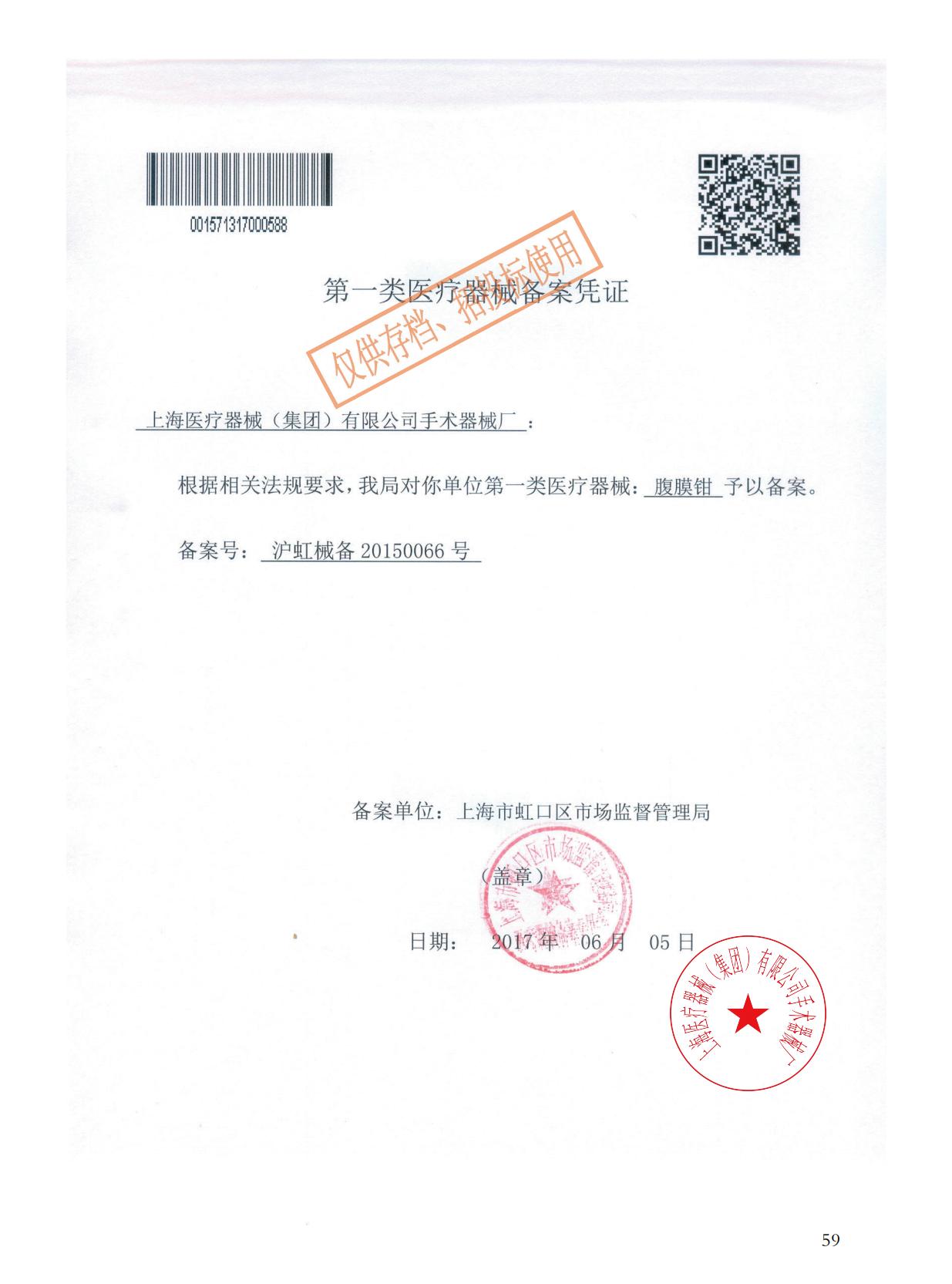 - 產(chǎn)品注冊證號: 滬虹械備 20150066 號