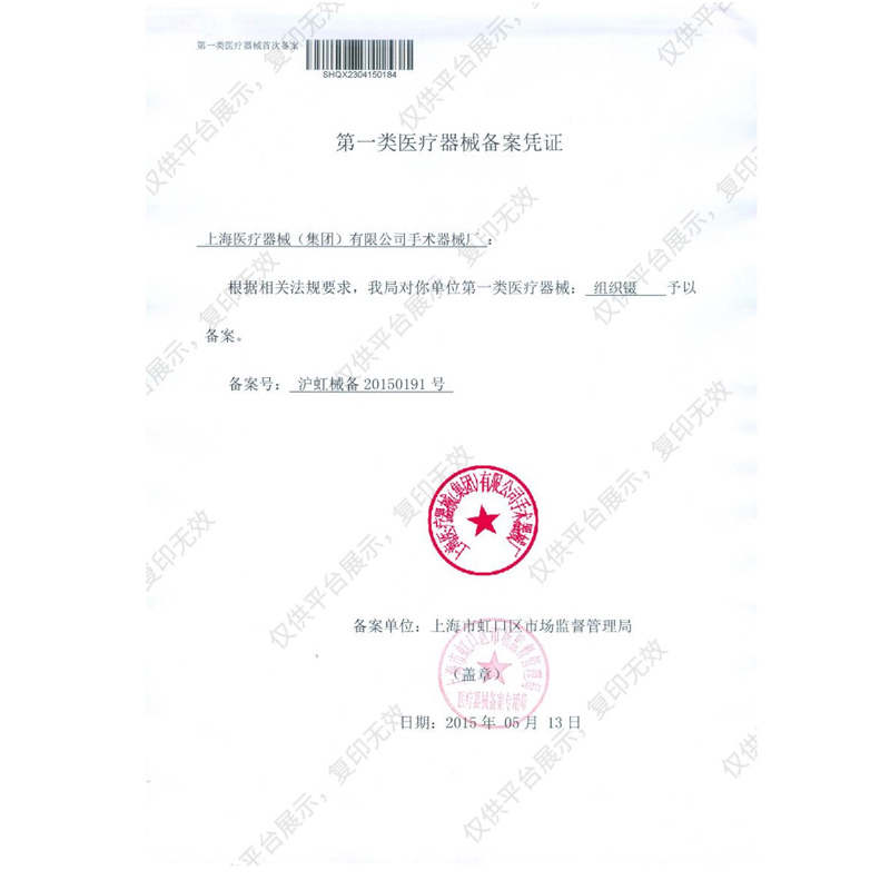 - 產(chǎn)品注冊(cè)證號(hào): 滬虹械備 20150191號(hào)