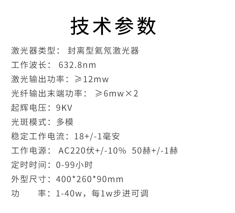 嘉光 氦氖激光治療儀 JH30A (雙管普通型)性能指標(biāo):