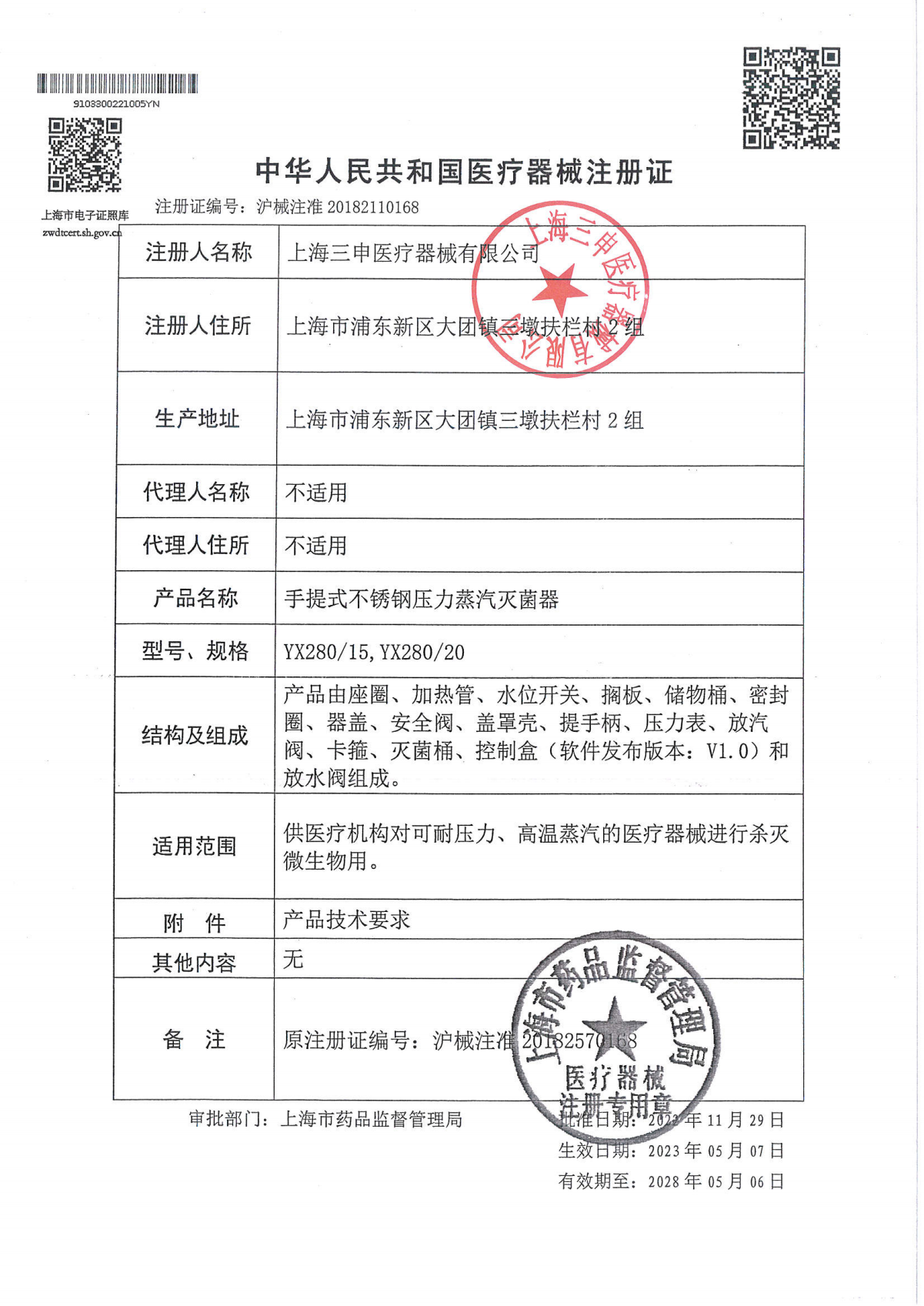 - 產(chǎn)品注冊證號:滬械注準(zhǔn)20182110168