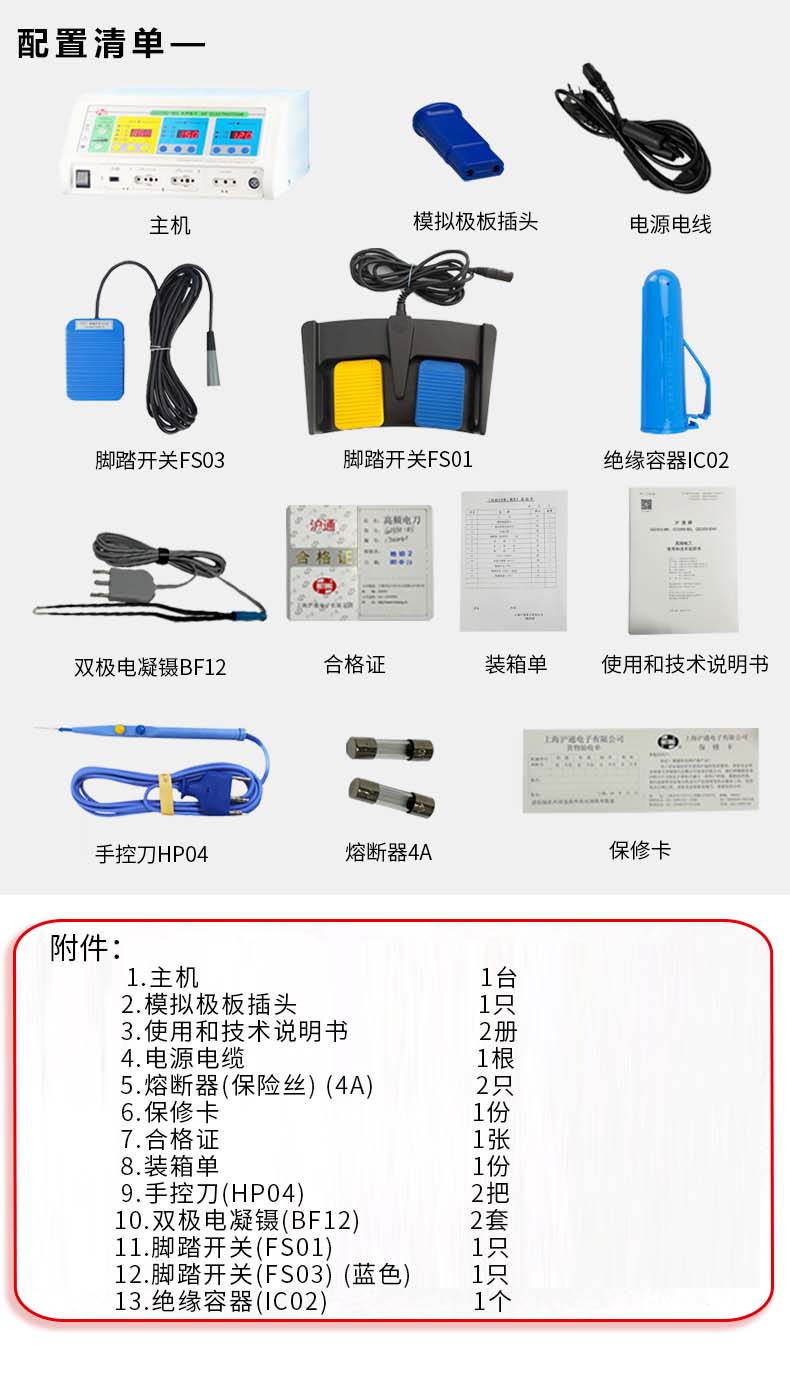 上海滬通 高頻電刀 GD350-B5 配置清單: