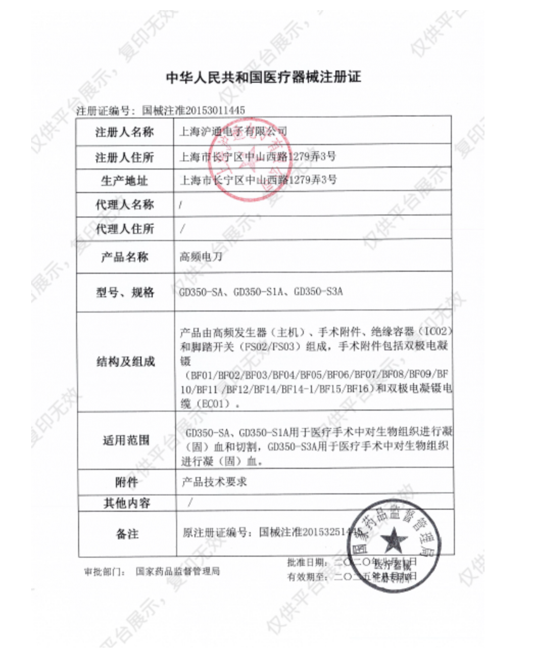 滬通高頻電刀 GD350-S1 投訴電話:021-56532303 訂購聯(lián)系電話: 021-51601230