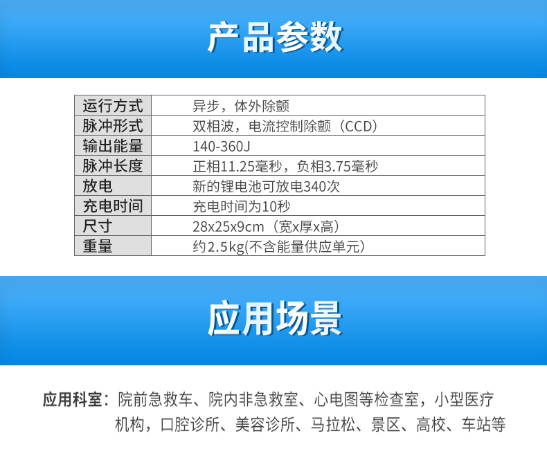 自動(dòng)體外除顫儀——醫(yī)院、急救中心、大型商場、工廠、學(xué)校、公眾等專業(yè)人士及非專業(yè)人士。