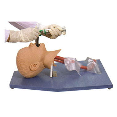 2、將模擬人仰臥,頭后仰,頸上抬,使口,咽、氣管基本重疊于一條軸線。