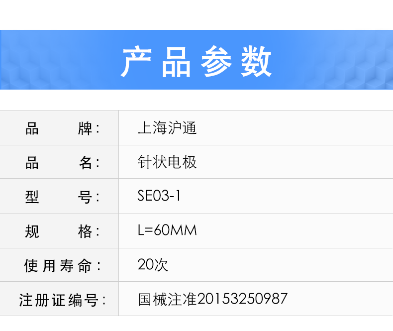 - 品名:滬通高頻電刀針狀電極 SE03-1