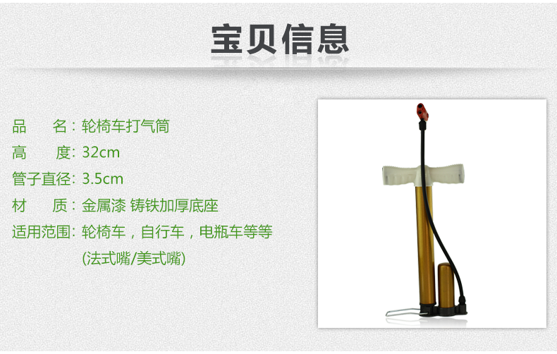 輪椅車打氣筒 高壓泵打氣快速 便攜可隨車帶 法式美式氣嘴均適用