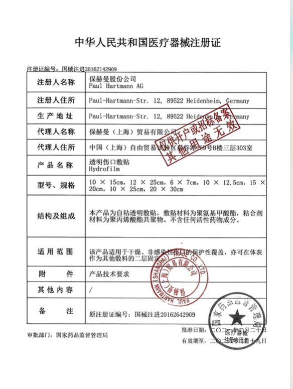 - 透明自粘薄膜敷料。由半通透的聚氨酯薄膜制成,防水抗菌低致敏,移去時無痛、無殘余。