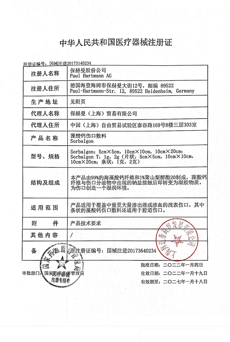 - 品名:德國保赫曼德濕康藻酸鈣傷口敷料 Sorbalgon
