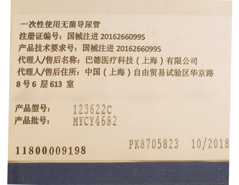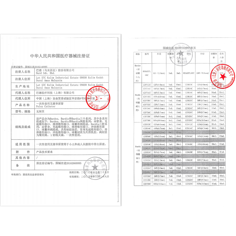 Bard 巴德雙腔導尿管 22# 有嘴 投訴電話:021-56532303 訂購聯系電話: 021-51601230
