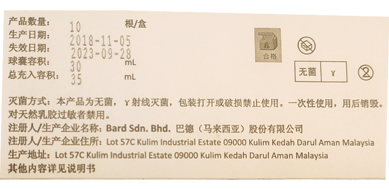 Bard 巴德雙腔導尿管 22# 有嘴 保修服務承諾: