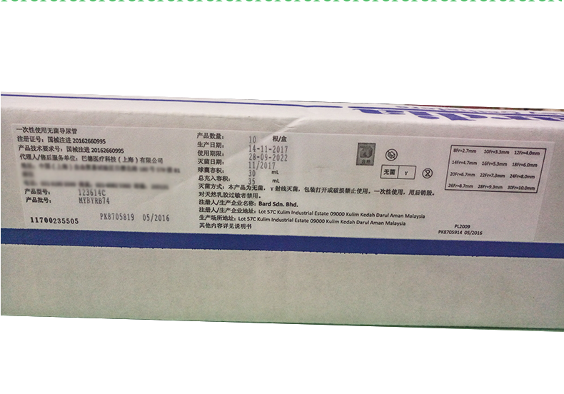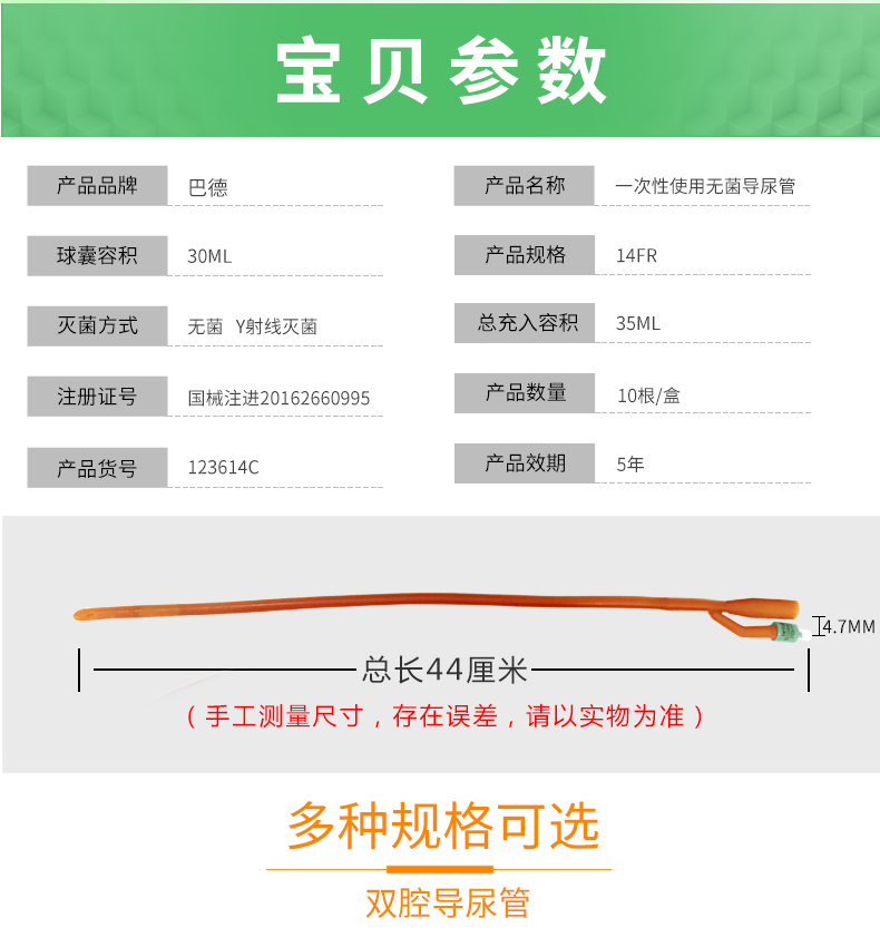 • 品名:Bard 巴德雙腔導(dǎo)尿管 14#