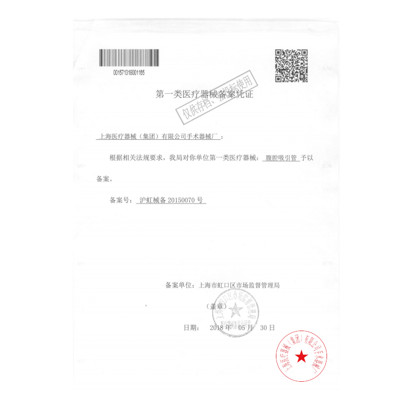 • 產(chǎn)品注冊(cè)證號(hào):滬虹械備 20150070 號(hào)