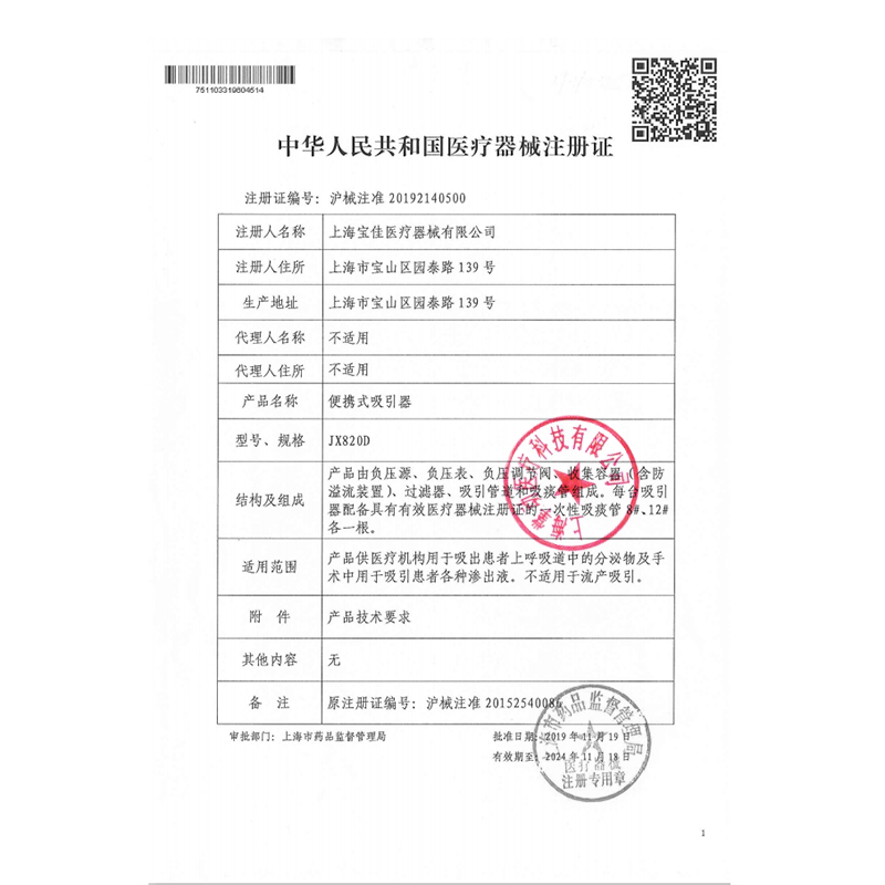 - 產(chǎn)品注冊證號:滬械注準20192140500