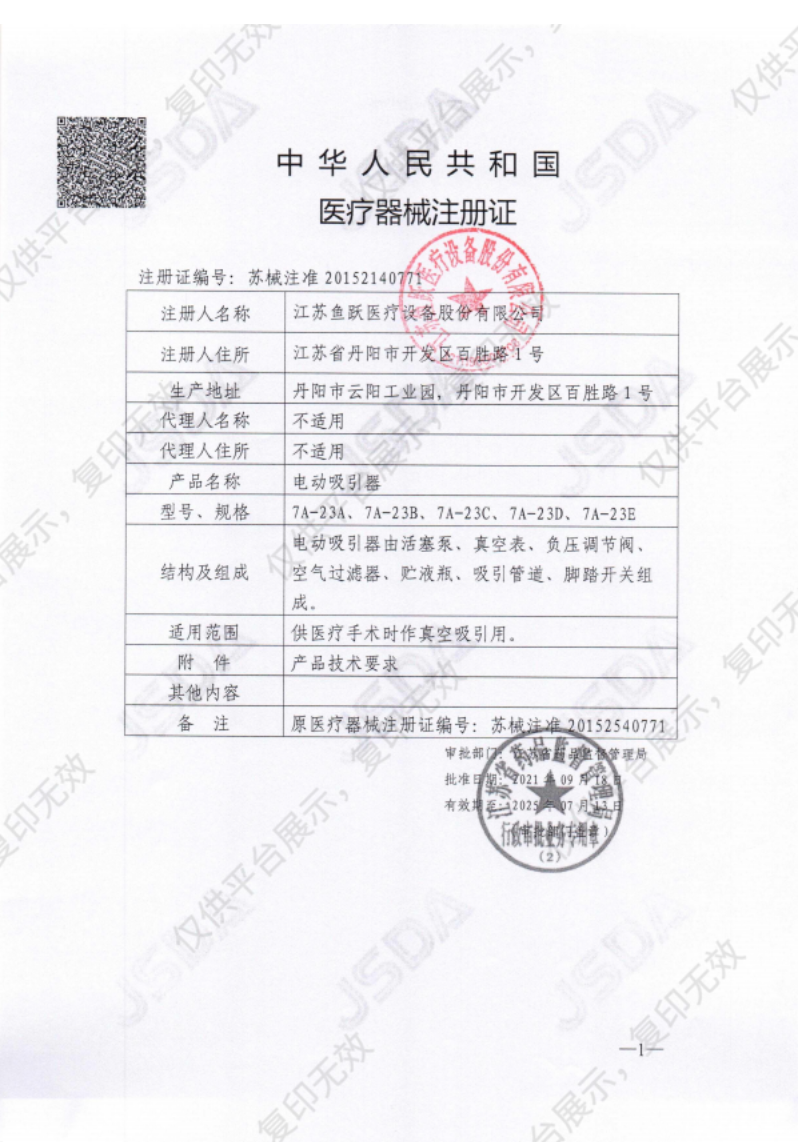 - 產(chǎn)品注冊證號:蘇械注準(zhǔn)20152140771