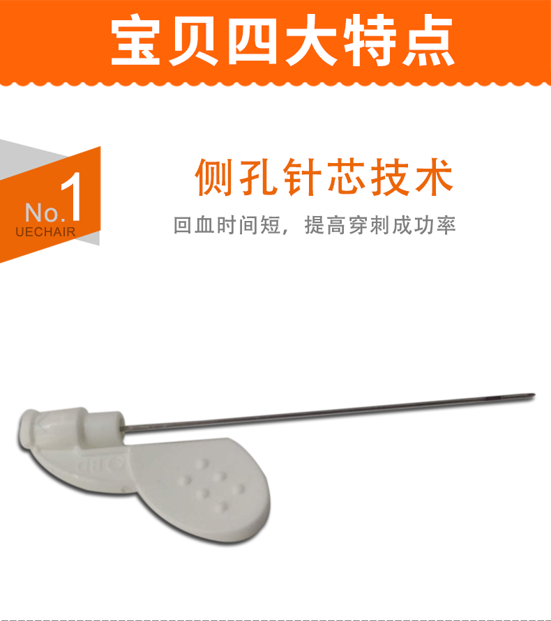 ◆ 金屬穿刺針前端設(shè)有回血側(cè)孔,在短時間內(nèi)迅速回血,提高了穿刺成功率