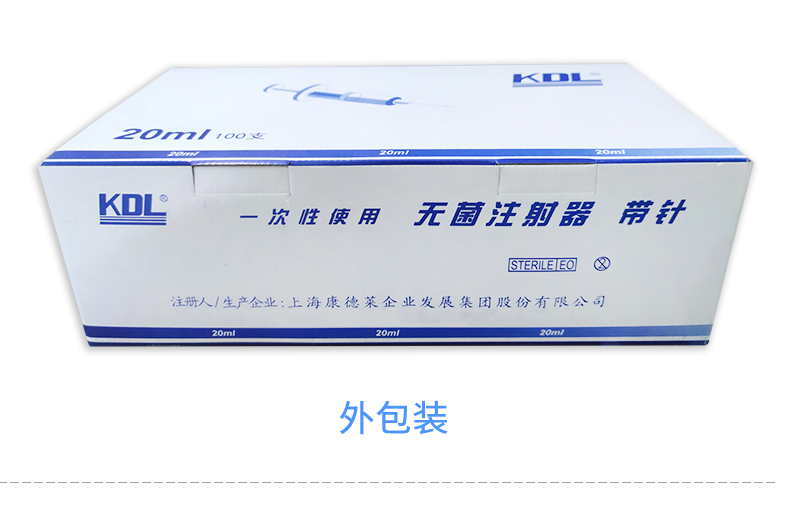 康德萊一次性使用無菌注射器螺口 20ml 帶針 1.2×38mm 100支/盒, 800支/箱, 一箱起批