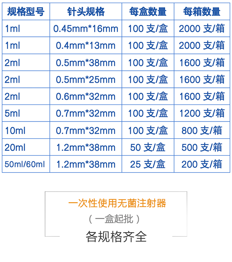 一次性使用無(wú)菌注射器(帶針) 1ml(0.45x16) 2000